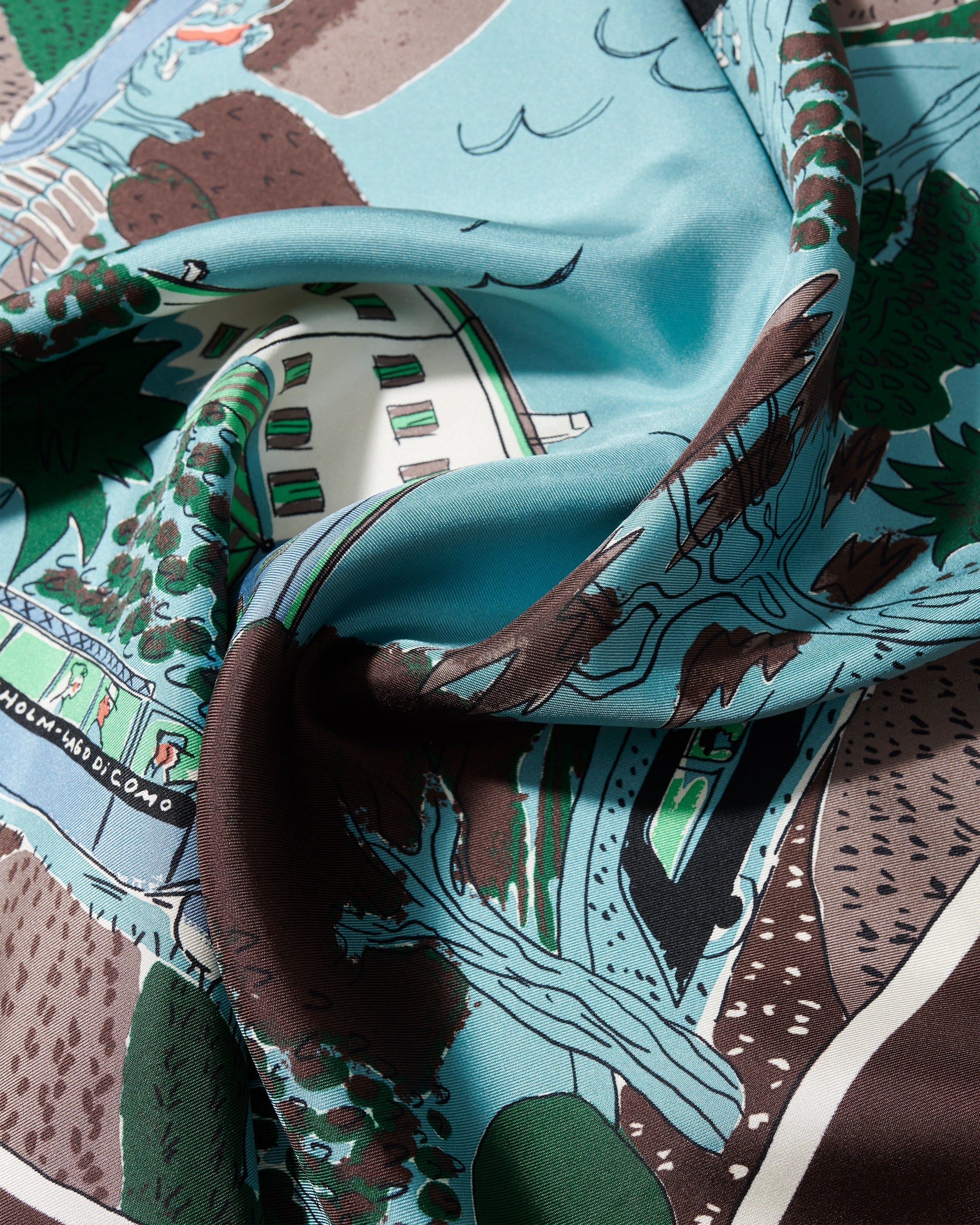Crafted in Como, Italy, the Passalacqua Silk Scarf features a hand-painted print depicting the villa and its surrounding Lake Como landscape. Finished with rolled edges, the scarf captures a sense of place and timeless craftsmanship.